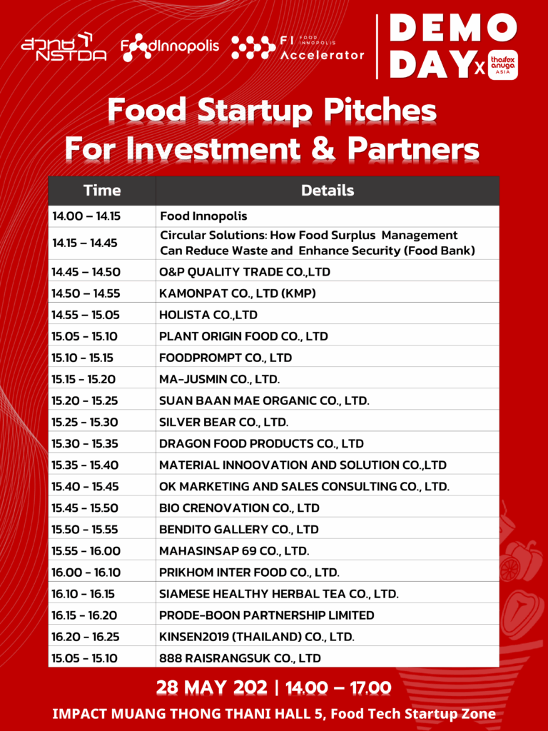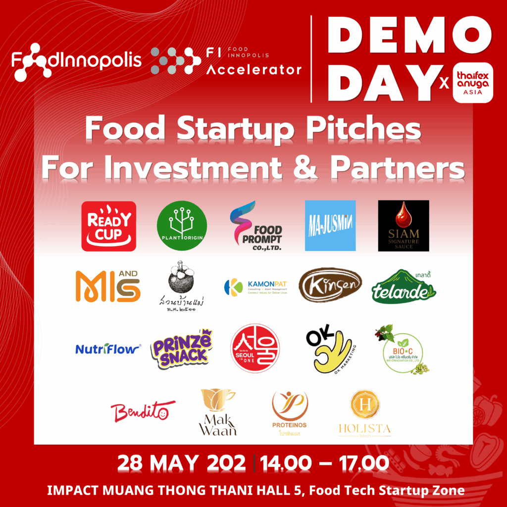 🎉🎉 เมืองนวัตกรรมอาหาร (Food Innopolis) โดย FI-Accelerator ร่วมกับ THAIFEX-Anuga ASIAขอเชิญเข้าร่วมกิจกรรม Food Startup Pitches for Investment & Partners การนำเสนอและทดสอบชิมผลิตภัณฑ์นวัตกรรมอาหารจากผู้ประกอบการ ในเครือข่ายของเมืองนวัตกรรมอาหาร ในวันพุธที่ 28 พฤษภาคม 2568 ตั้งแต่เวลา 14.00 – 17.00 น. ณ อิมแพค เมืองทองธานี ฮอล 5 ใน Food Tech Start-Up Zone