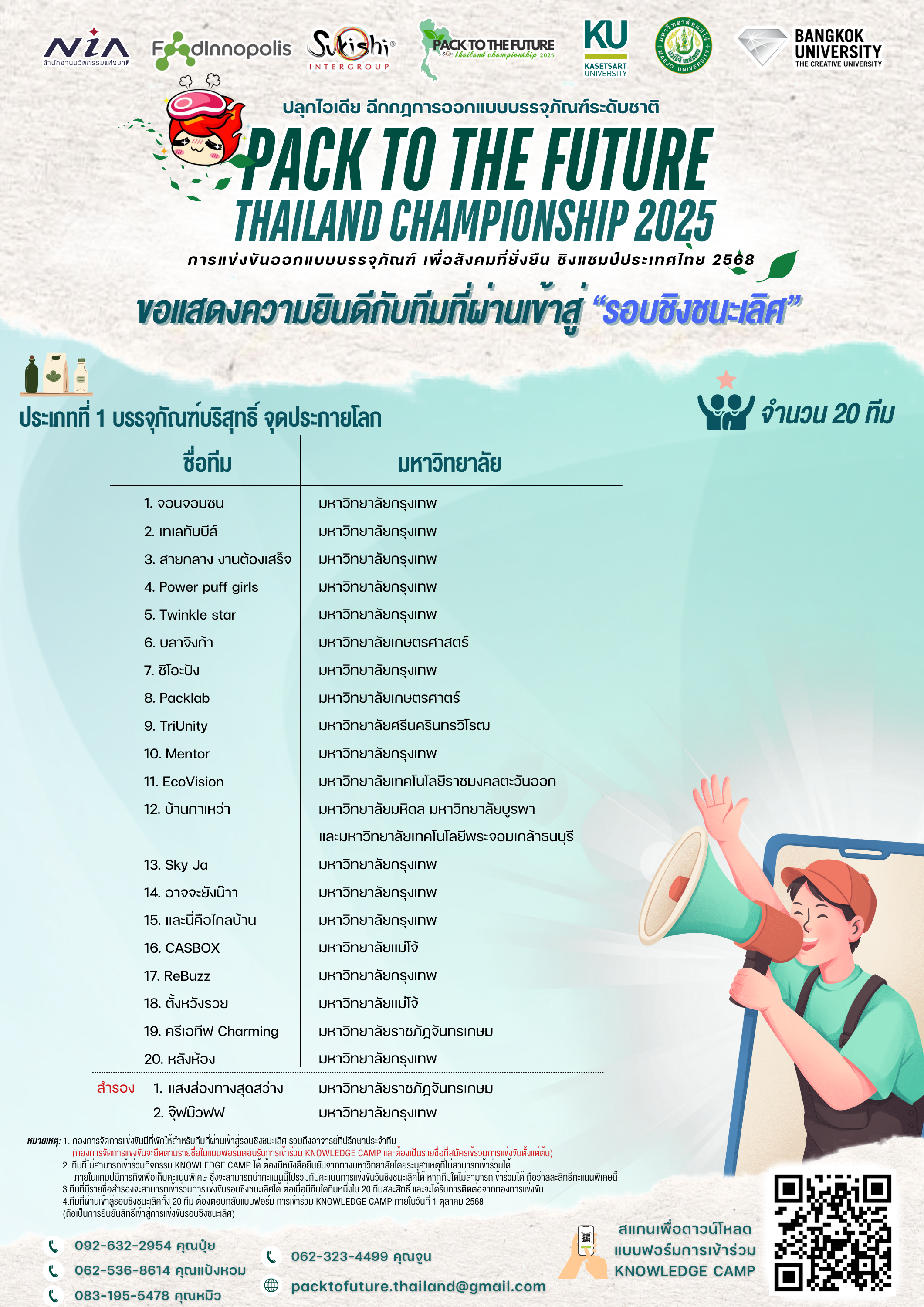 ขอเสียงปรบมือดังๆ และแสดงความยินดีกับทุกทีมที่ผ่านเข้ารอบชิงชนะเลิศ PACK TO THE FUTURE 2025 🚀✨