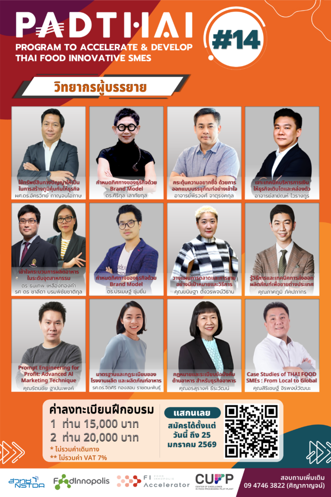 ✅ เป็นผู้ประกอบการที่มีความสนใจในการพัฒนากลยุทธ์ของธุรกิจในทุกมิติควบคู่ไปกับการพัฒนาผลิตภัณฑ์นวัตกรรมอาหาร